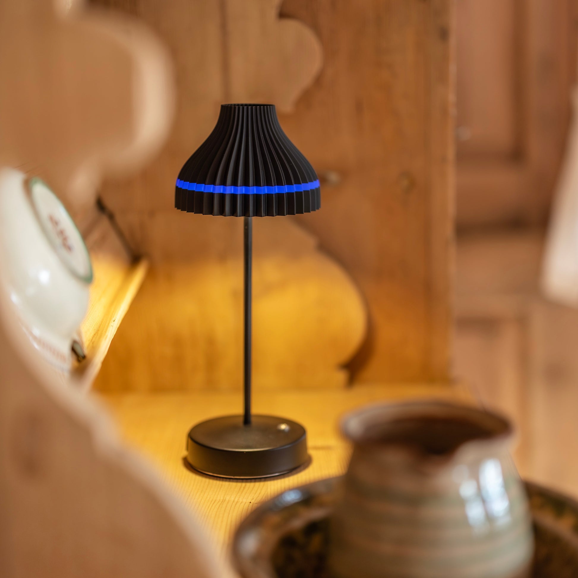 Diese einzigartige Tischlampe verbindet modernste 3D-Druck-Technologie mit der jahrhundertealten Handwerkskunst des Bregenzerwaldes. Inspiriert von der traditionellen Juppe, der eleganten Festtagstracht der Region, vereint sie klare Linien, feine Faltenstrukturen und edle Materialanmutung zu einem besonderen Wohnaccessoire.