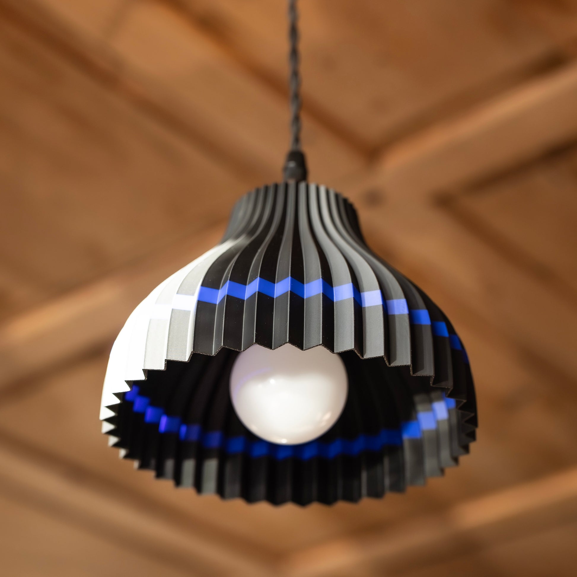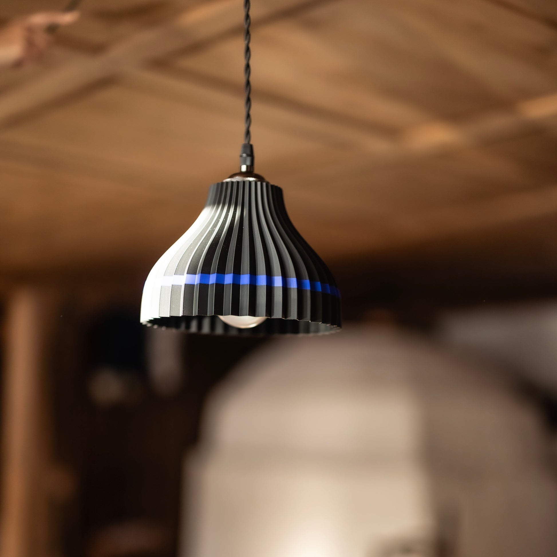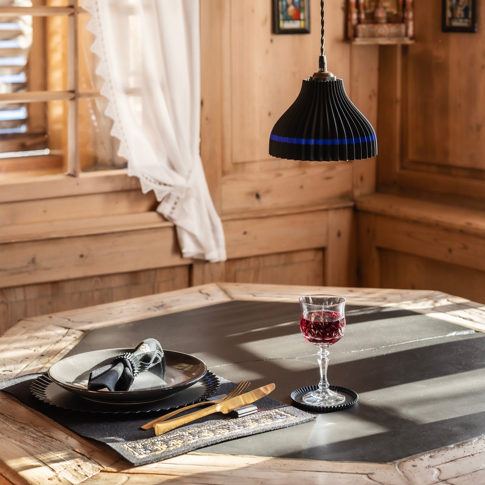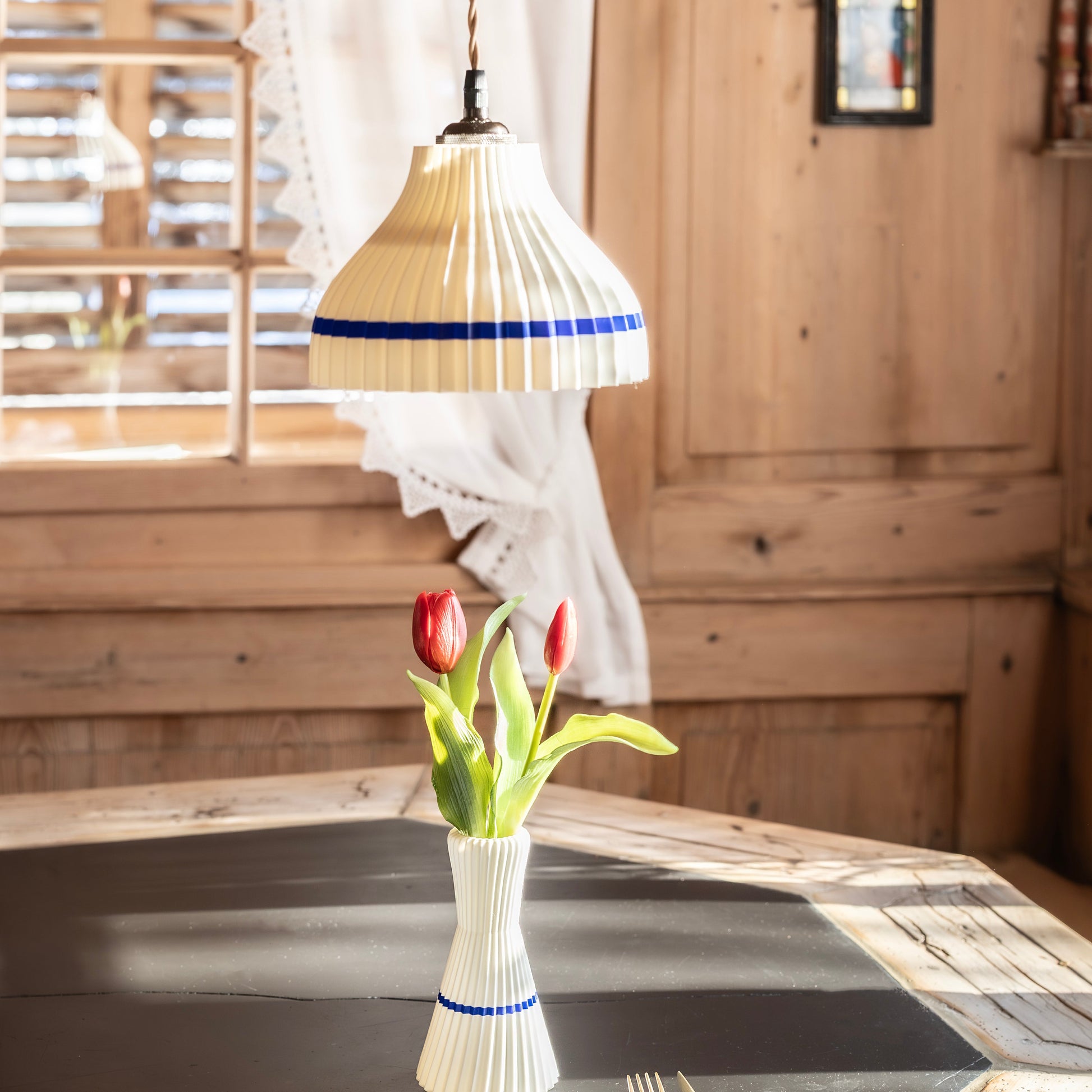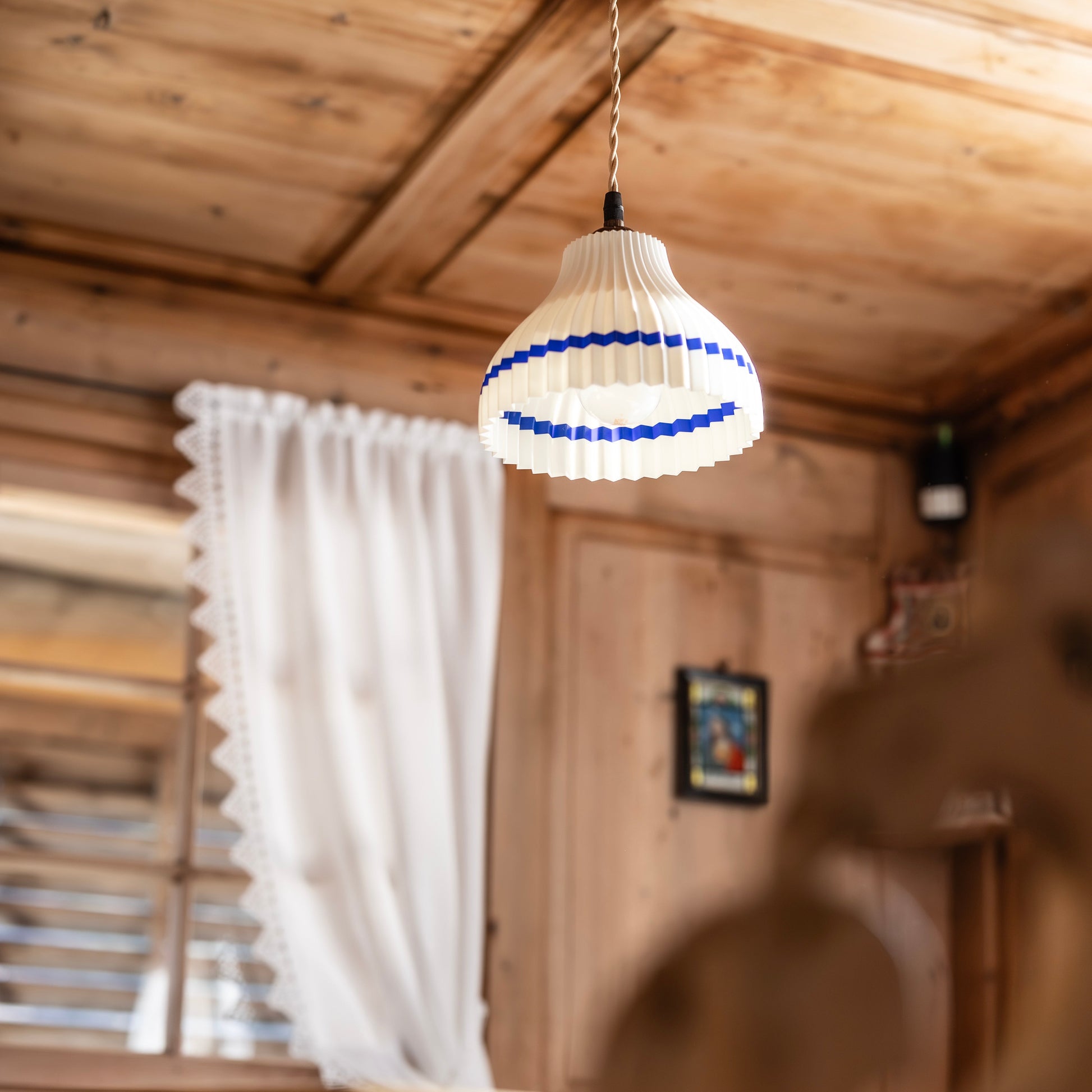 Der Schirm sorgt für ein warmes, harmonisches Licht und schafft eine gemütliche Atmosphäre – ideal für Wohnräume, Stuben, Gasträume oder moderne Interieurs mit regionalem Bezug.