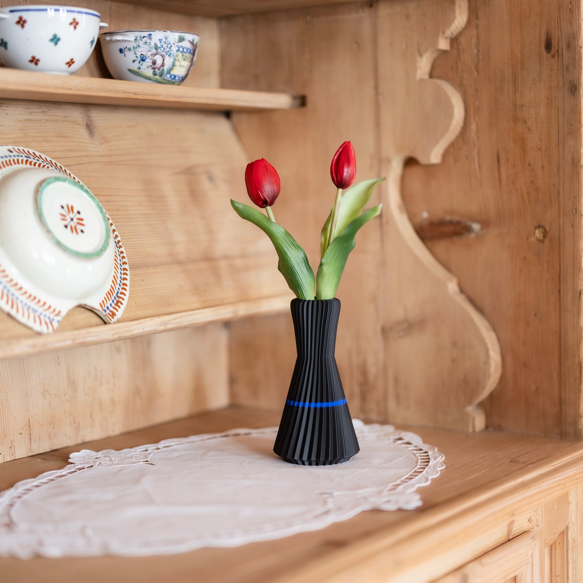 Unsere Vase ist wasserdicht versiegelt und kann somit auch für Frischblumen verwendet werden.